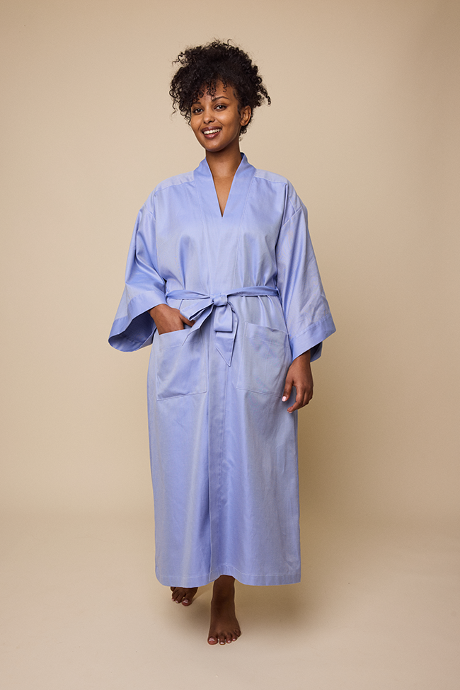 Set - Robe & Long Sleeveless Nightie Lavender Oxford Stripe