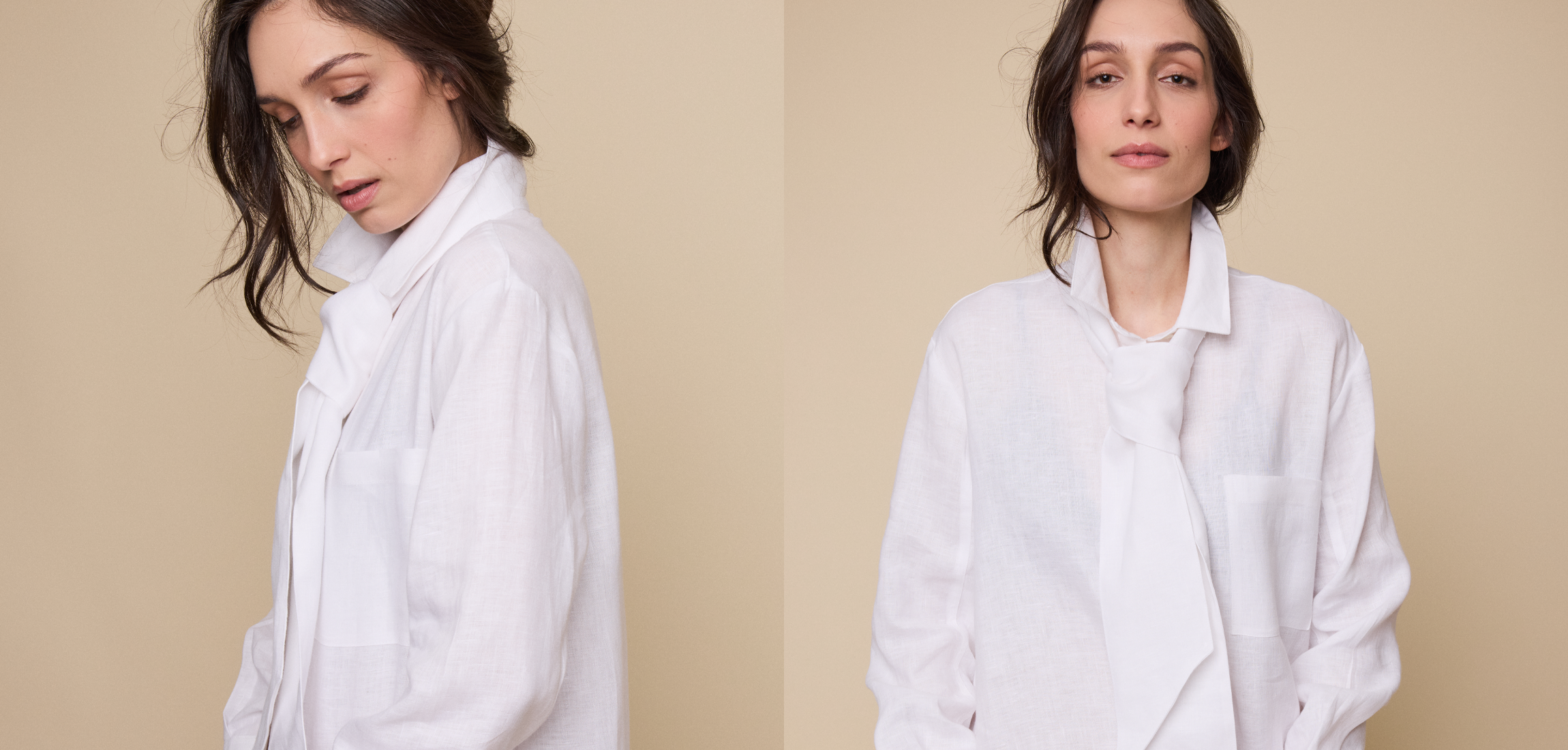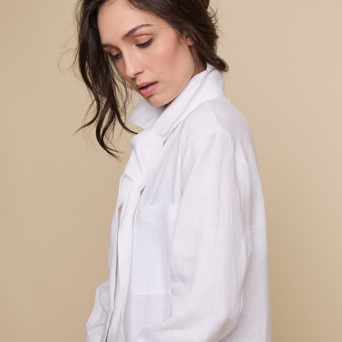 Set - Long Sleeve Shirt & Lounge Pant White Double Gauze