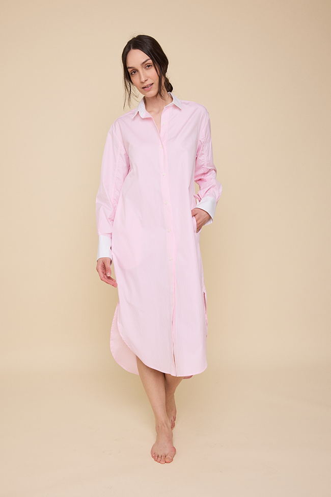Long Belted Shirt Dress Blue en Bleu Stripe